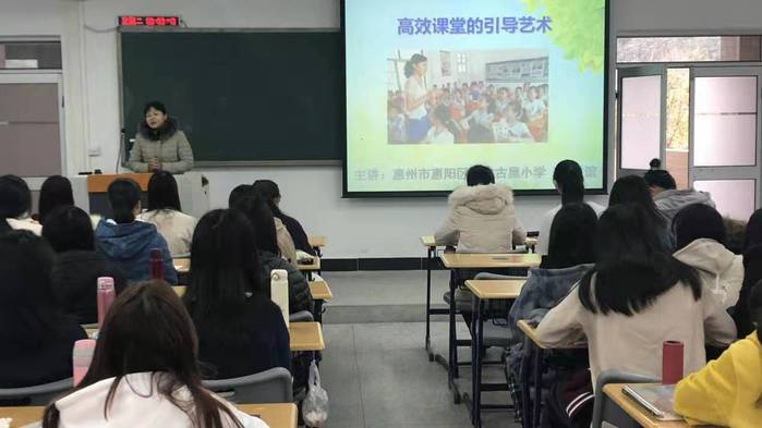 本网讯 12月15日上午,惠阳区淡水古屋小学周秀谊老师应邀为19级汉语言文学4班的同学开展主题为“高效课堂的引导艺术”的嵌入式课堂,该课程授课教师冯晓主持本次活动。