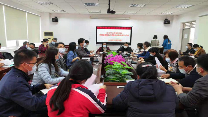 本网讯 12月25日下午,文学与传媒学院在旭日大楼422会议室召开“课程思政改革与建设研讨会”,学院全体领导、教师参加本次研讨会,会议由学院院长陈梦主持。