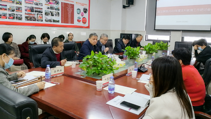 本网讯 12月28日上午,政法学院在教学实验大楼1608会议室召开了2020年度本科教育工作研讨会,全院教职工参加了此次研讨会,会议还特邀请了校发展规划处处长张敏、经济管理学院副教授徐宁等参加,会议由政法学院院长蒋炜主持。