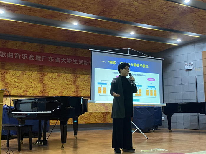 本网讯 12月25日上午,音乐学院邀请优秀校友、惠州市下埔小学中小学一级教师林映华老师在音乐学院排演厅开展中学名师进校园系列讲座——《班级合唱的教学模式和入门训练》。本次讲座由教务处主办、音乐学院承办。音乐学院党总支书记岳晓云、副院长林碧炼和刘乘鹭老师以及音乐学院的同学们参加了本次讲座。