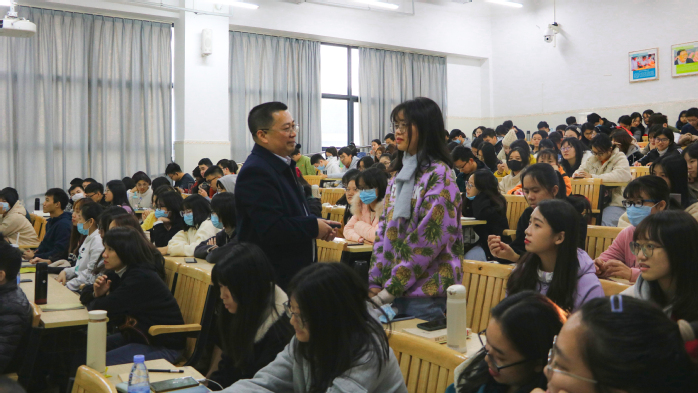 在中场的互动环节,何资桥与同学们就大众眼中对心理危机的谬误认识这一观点展开交流。他提出,同学在面对危机的时候要调整好自己的心态,做到“听、说、读、写” “琴、棋、书、画” “动、静、自然” “笑口常开”。面对心理危机,他做出了以下总结:一是发现问题要立即报告,但求宁滥勿缺,贵在早、快;二是做好监护,积极与专业机构沟通寻求帮助,同时要做好保密工作。