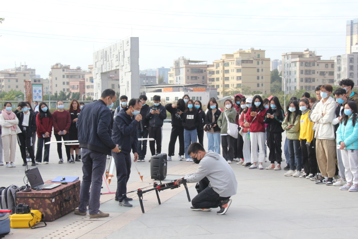 上午,学院师生来到仲恺公园观摩和了解无人机航测现场作业。在现场,经纬公司副总经理李仁柱向同学们介绍航飞设备及航测相关知识,公司的专业技术人员详细地向同学们介绍了不同类型的无人机,并进行了多旋翼无人机路径规划及飞行的演示和讲解。
