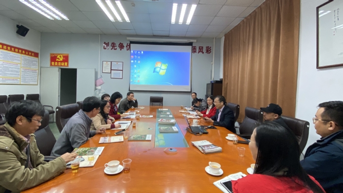 本网讯 1月7日下午,惠州文化研究院院长陈梦、常务副院长张波、秘书长张继荣、旅游学院党总支书记林红以及惠州文化研究院成员、文学与传媒学院教师李耿辉、旅游与地理学院教师李岩、胡杨、金艳春等人,在宣传部部长金伟的带领下,到位于水口镇的广东祯州集团有限公司考察调研,公司董事长薛子光、销售经理古镇彰以及办公室工作人员参加交流。