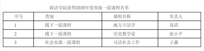 本网讯 近日,广东省教育厅正式公布了省一流本科课程认定结果,政法学院共有3门课程成功入选,入选数位列全校第1名。其中,易清老师负责的《地方立法学》课程、张小平老师负责的《历史教学论》课程入选线下一流本科课程;王鑫老师负责的《司法社会工作》课程入选社会实践一流本科课程。
