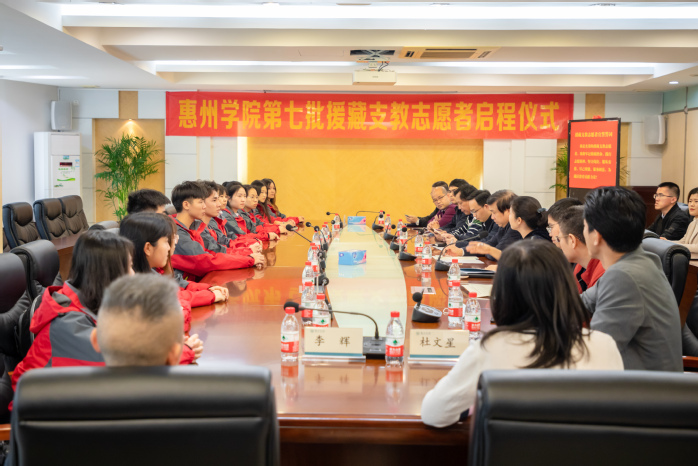 本网讯 3月7日下午,我校在行政楼202会议室举行第七批援藏支教志愿者启程仪式。副校长刘国栋出席仪式,党委学生工作部、教务处、团委、宣传部、人事处等相关职能部门负责人,相关二级学院党总支书记、副书记、辅导员代表和第七批援藏支教志愿者一同参加了仪式,会议由学生处处长胡萍主持。