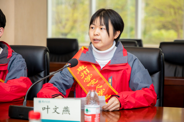 外国语学院学生叶文燕作为支教志愿者代表发言。她发言中谈到,自己是一名退役大学生,在部队这个大熔炉中懂得“革命战士一块砖,哪里需要哪里搬”,参加教育援藏是一次让自己继续发挥军人本色的机会,她将珍惜这次历练机会,在支教中认真履行好教师的责任,以扎实的工作作风和勤勉的敬业精神,为藏区的教育事业贡献一份力量。