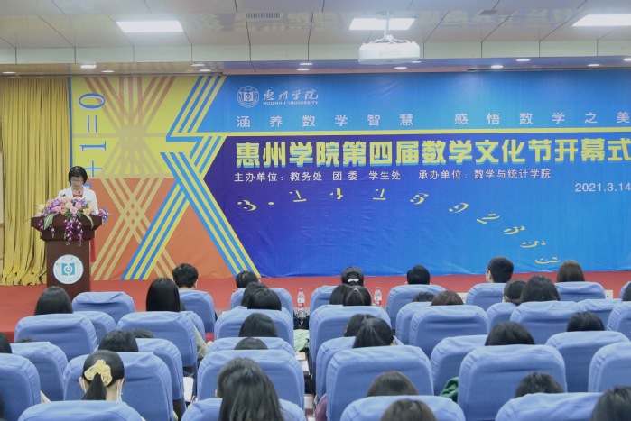 胡萍指出,3月14日是国际数学节,也是国际周周率日,是致敬圆周率π的重要节日,在这个特殊的日子举行学校第四届数学文化节开幕式意义重大,并宣布惠州学院第四届数学文化节开幕。