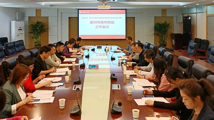 本网讯 3月11日下午,惠州学院、惠州市教育局共建国家教师教育创新实验区系列活动之“惠州市美育联盟”2021年度工作推进会在行政楼202会议室召开。惠州市教育局相关领导,惠州城市职业学院、惠州市体育运动学校、惠州第十一小学金榜分校、惠州麦地小学相关代表,我校教务处处长陈益智、美育中心主任罗晓敏、美术与设计学院、音乐学院、文学与传媒学院、旭日广东服装学院、体育学院等负责领导参加了会议。会议由罗晓敏主持。