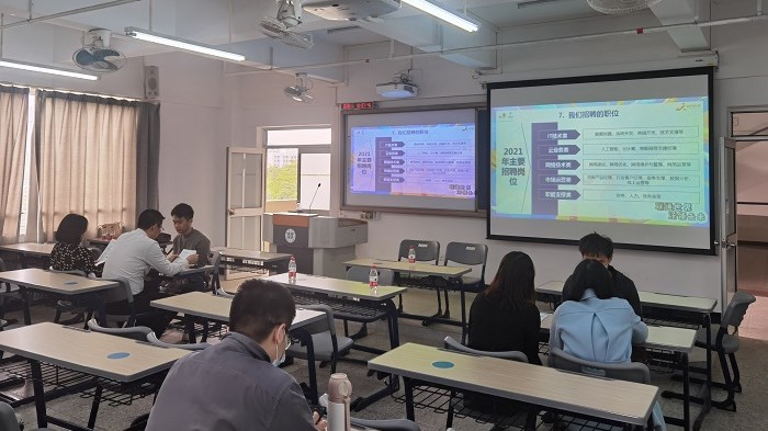 计算机科学与工程学院副院长徐涛,陈海容分别对学院2021届毕业生的整体情况作了简要介绍,就招聘宣讲作了动员讲话,希望同学们认真就业形势,改变就业观念,先就业再择业,珍惜机会,把握机会,以积极自信的心态对待就业。