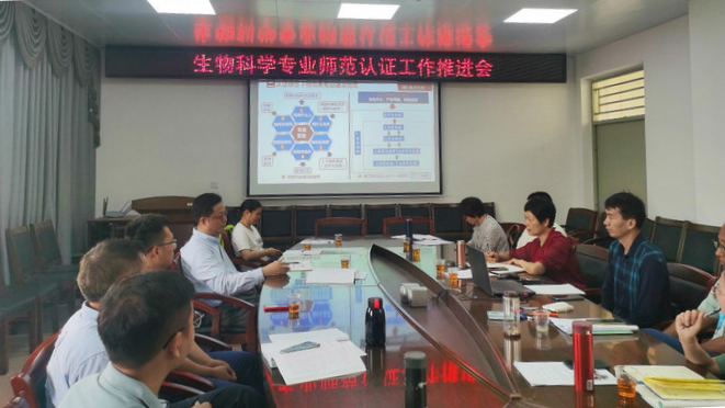 在生物科学专业师范认证工作推进会上,学院院长周立斌汇报了生物科学专业师范认证整体准备情况和下一步工作计划,目前自评报告、补充资料、支撑材料已基本收集完成,接下来将重点做好自评报告的提炼与精简、师范认证宣传工作与氛围营造、师生、实习单位、用人单位、校友的座谈与培训、汇报PPT的准备。