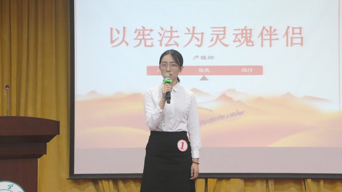 学校开展的宪法演讲比赛决赛现场