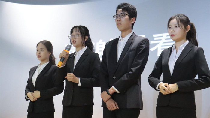 赛前,经济管理学院副院长陈秋锋、本次校赛赞助方广东远见智诚市场调研股份有限公司总监苏文灏分别发言。答辩阶段,选手们就评委团老师们提出的问题一一进行了答辩。评委代表陈光慧教授在点评中表示,参赛的9支队伍整体水平都比较高,同时也建议大家在方法选择、数据处理等方面再修改完善,争取在省赛中取得更好的成绩。