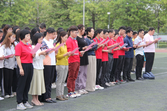 本网讯 4月19日清晨,地理与旅游学院在学校田径场举行升旗仪式,学院全体师生参加了本次仪式。
