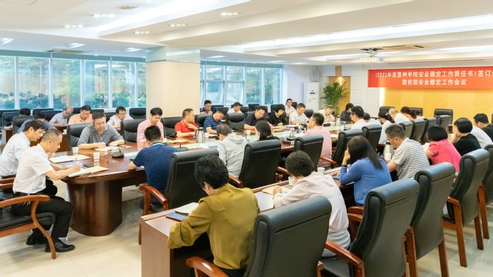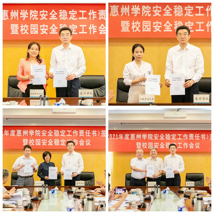 本网讯 4月27日上午,我校在行政楼202室举行2021年学校安全稳定工作责任书签订仪式。党委书记、校长彭永宏,党委副书记、纪委书记、省监委驻惠州学院监察专员罗川山以及各二级单位党政负责人参加了仪式。仪式由罗川山主持。