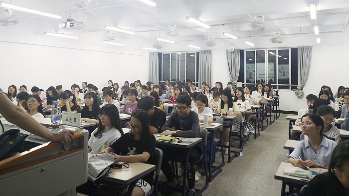本网讯 4月23日晚,马克思主义学院邀请惠州市教育科学研究院教研员车志勇来院作《教师招聘考试交流分享》专题讲座。2017、2018级思想政治教育专业的全体学生聆听了讲座。讲座由学院党总支副书记杨倩主持。