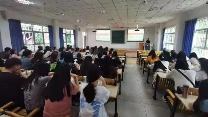 温颖慧老师向同学们列举了几个在教学期间的实例,并着重说明了学生心理健康的重要性,期间和同学们积极互动、讨论,在学生遇到这些事情的时候,作为一名教师应该如何应对。此后将话题引入课堂教学,向学生们深刻、细致的讲述了关于美术鉴赏课程的一些教学设计,心得体会,通过实例分别列举了东西方不同时期的具有代表性艺术作品,并引导学生学习如何更好的进行教学活动。整个讲座在轻松愉悦的氛围下进行,获得了学生的一致好评。