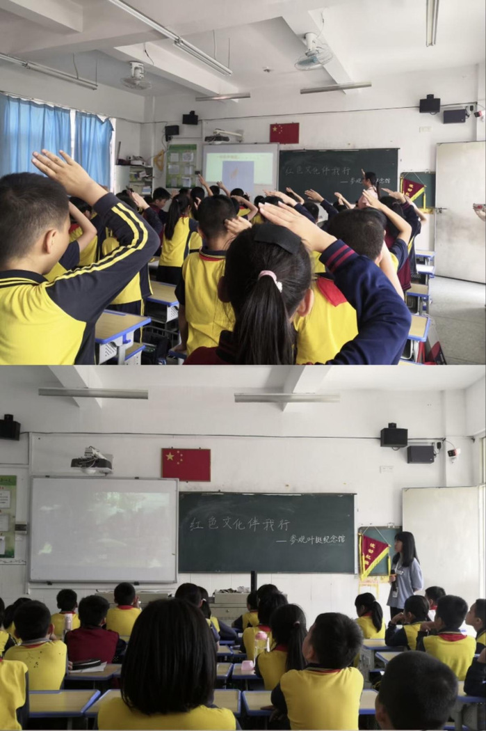 学院组织各个班级学生在见习试教期间通过多种形式,如召开主题班会、讲述党建故事、传唱红色歌曲等,开展以“主题教育进校园、先进文化进校园、经典歌曲进校园”的“三进”活动,让祖国的花朵、未来的栋梁之才从小受到红色历史文化的耳濡目染,让爱国爱党的种子深深扎根在心中。