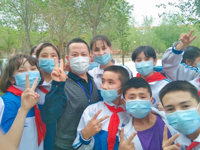 作为53团中学的一名道德与法治教师,周景新校友面对的是一群调皮且充满好奇心的初中学生,为了激发同学们的学习主动性,周景新校友想了不少“新点子”。他喜欢称他的学生为“孩子们”;找准机会就去鼓励和表扬学生,还精心准备小礼物和零食,让孩子们体会到学习与进步的喜悦。此外,周景新夫妇认为,教育需要更多耐心。新疆学生的普通话不是很熟练,那就放慢语速、反复强调;在夫妇俩的朋友圈里,随处可见他们与新疆学生们的合影……很快,孩子们都感受到了这两位汉族老师的爱。令周景新校友难忘的是,孩子们通过QQ信息提前知晓了他的生日,并在晚修当晚共同为老师唱响了生日快乐歌……新疆孩子们简单、纯真,开朗且热烈,周景新夫妇也希望能成为托举他们看世界的肩膀。