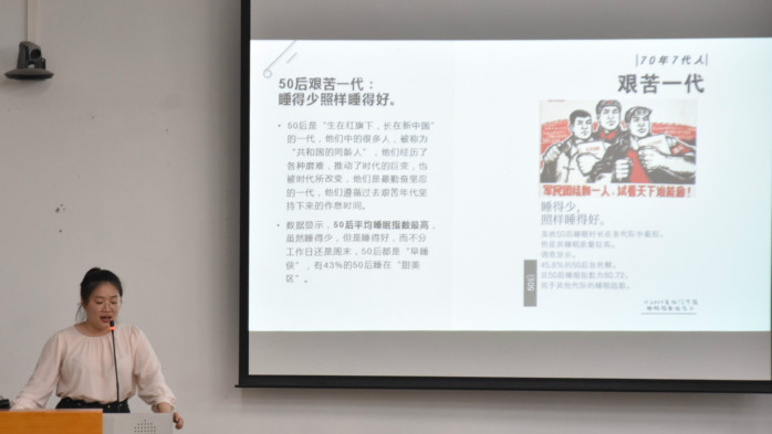 针对目前部分大学生面临的睡眠焦虑、睡前拖延等问题,叶彤老师以“你今晚打算几点睡”引入话题,为大家讲述当代大学生睡前经历的心路历程。她在讲座中解释了什么是“睡前拖延症”,分析了导致睡眠问题的因素,还结合时代背景分析了“50后”到“10后”不同年代人的睡眠情况、详细阐述了晚睡的原因。她指出,如果长期睡前拖延,经常熬夜会导致记忆力衰退、抵抗力下降、黑眼圈加重以及脱发等不良影响。为解决“睡前拖延”的问题,她提供了许多帮助睡眠的方法。