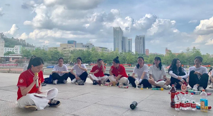 本网讯 5月12日下午,旭日广东服装学院学生党支部成员在田径运动场主席台开展了第八期红雁传书—党史学习读书分享会。