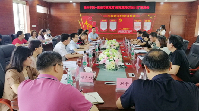 本网讯 5月14日上午,我校与惠州市教育局“美育浸润行动计划”推进会在龙门县平陵中心小学举行。我校教务处副处长、美育中心主任罗晓敏,音乐学院党总支书记岳晓云,惠州市教育局三级调研员秦昌俊及相关部门负责人,龙门县教育局副局长陈祖东,龙门县对口6所学校校长、音乐老师等参加会议。会议由龙门县教育局教师发展中心单和仁老师主持。