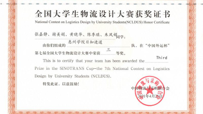 据悉,“日知进道队”从2020年10月开始备赛,历经校赛、全国初赛、复赛,一路闯入全国决赛,历时近7个月,参赛师生凭借创新激情和持续不懈努力,在全国450余所本科院校参加的676支参赛队中脱颖而出进入决赛并获三等奖,参赛队员同时获得了中物联颁发的中级物流师证书。