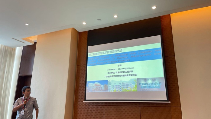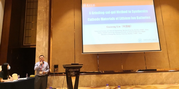 5月16日下午,学院院长刘国聪应邀担任动力锂电池分会场主持人并作题为“A Grinding-sol-gel Method to Synthesize Cathode Materials of Lithium Ion Batteries”的学术报告。刘国聪教授结合科研团队多年的研究成果,提出了一种简单的研磨-溶胶-凝胶法制备锂离子电池多孔电极材料,可实现低成本制备高能量密度的掺锰磷酸钒锂电池正极材料。