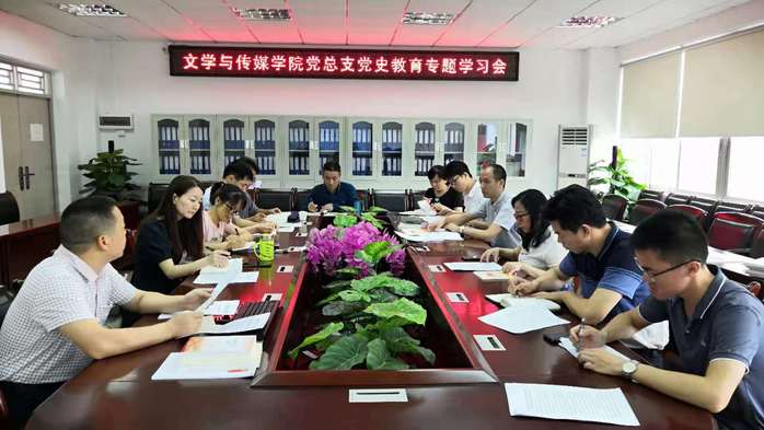 本网讯5月19日上午,文学与传媒学院在旭日大楼422会议室召开党史专题学习会。会议由学院党总支书记赖常青主持,党政班子成员、各党支部书记、专任教师代表以及辅导员等参加了会议。