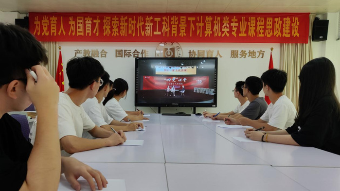 本网讯 5月22日下午,计算机科学与工程学院积极组织党员挂钩学生宿舍的120名同学通过线上观看“同上‘四史’思政大课”活动的第四讲——“同上社会主义发展史思政大课”,线下组织优秀学生党员和团学干部在电子楼219会议室集中观看。