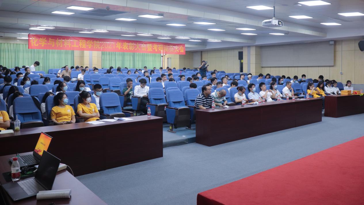 本网讯5月23日下午,化学与材料工程学院在图书馆报告厅举行学院2021年表彰大会暨考研动员大会。学院领导班子、中层干部、各班主任代表、辅导员代表、获奖人员代表及2018级全体同学参加了会议。会议由学院党总支郭爱平书记主持。