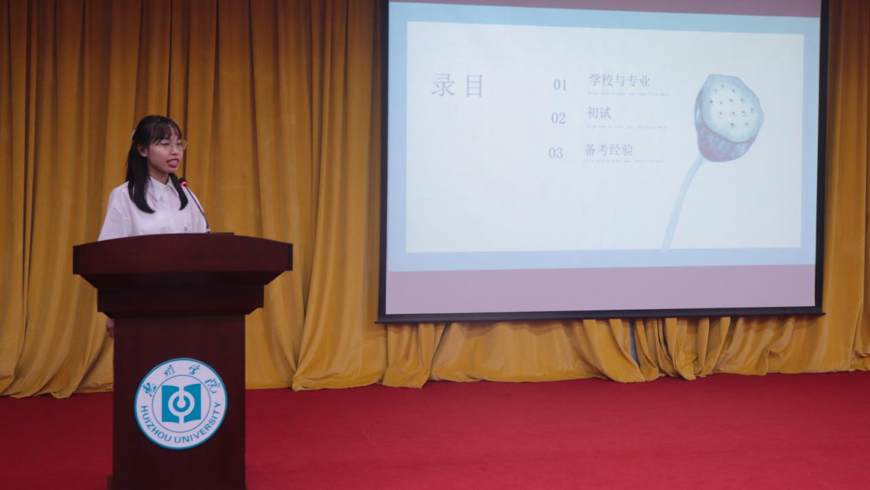 2017级化学专业代表杜怡芳根据自己考研时的经历,重点分享了在准备初试时的方法,她建议备考的同学应根据目标做好月计划、周计划,根据两个计划合理安排每日任务和时间分配;以积极的心态备考,坚持运动,注意养成规律的作息时间。2017级化学工程与工艺专业代表陈惠格分享了如何进行院校和专业的选择、初试科目如何复习及自己的备考心得体会,她建议同学们:要相信自己,并善于寻求帮助,坚持下去。2017级应用化学专业张玉坤就择校、备考、复试、建议四个方面进行了分享,他建议同学们积极参加科研项目、有计划复习、反复研究真题、利用好暑期认真复习。
