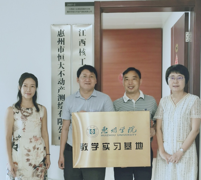 本网讯 5月21日上午,地理与旅游学院与惠州市恒大不动产测绘有限公司举行共建实践教学基地的签约授牌仪式。惠州市恒大不动产测绘有限公司总经理王启伟、地理与旅游学院院长戴学军、党总支书记林红、实验室主任郭亚东博士参加了本次签约授牌仪式。