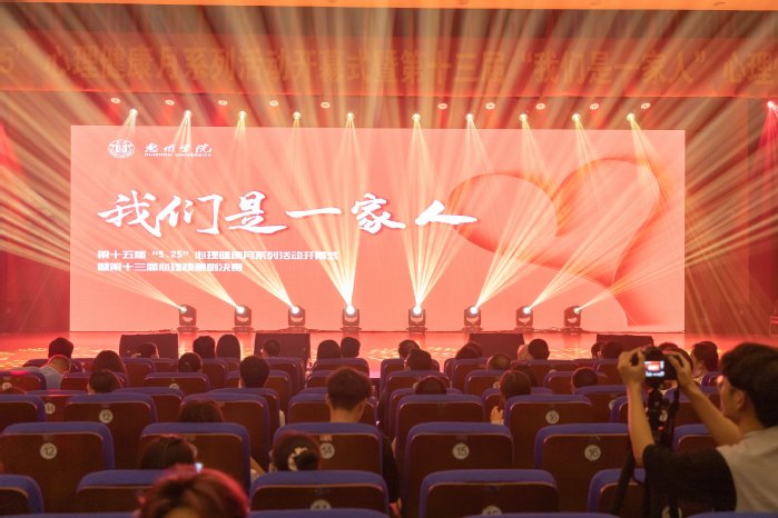 本网讯 5月23日晚,我校第十五届“5.25”心理健康月系列活动开幕式暨第二十三届科技文化艺术节之第十三届“我们是一家人”心理情景剧决赛在鹅城会议厅举行。惠州市戏剧家协会秘书长、省五个一工程奖获得者、惠州市艺出好戏剧社负责人高云鹏,中德精神分析连续项目高级组精神分析师、心理剧导演罗威娜,惠州市经济职业技术学院心理健康项目组老师胡宏志,惠州市第一中学心理健康指导中心主任、德育处副主任袁建群,我校心理健康教育与咨询中心副主任钟小川担任决赛评委。副校长刘国栋,党委学生工作部、团委负责人,心理健康教育与咨询中心专兼职教师,各二级学院师生代表以及惠州市各兄弟院校心理教师和学生代表五百余人参加了活动。