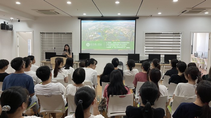 课堂上,介绍了东莞理工学院社区建设的“前世”,包括学生社区的发展历程、各社区所举办的特色项目等重要内容,为学生展现了东莞理工学院社区建设前期的探索及成就。期间学生积极互动,情绪高昂。她播放了东莞理工学院知行学院介绍片,并由此引入对学校社区建设“今生”的介绍。在此过程中,龚丹重点介绍了知行学院的党建工作、课程开展、学生活动、心理健康干预和社工服务等内容,向学生传达了知行学院“管理有温度、服务有尺度、教育有深度、引领有高度”的工作理念。她以几个案例分享和互动为结尾,引发学生思考,并针对学生的问题进行答疑。