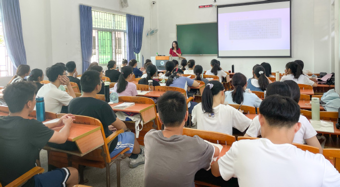 课堂上,魏法英以初中历史课本的目录大纲以及教学标准内容切入,根据己有教学经验提出如今初中历史教学中学生学习方面存在的一些问题,用形象生动的语言讲述中国古代史初中教学的“八个要点”教学策略。与此同时她分享了所在的任教学校惠州市第一中学的历史教学情况,给历史系学生们展示了她所在的历史备课组共同完成的历史教学课件,新颖的课件设计让历史系学生耳目。