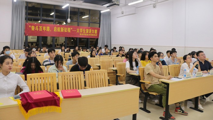 本网讯 5月23日晚,经济管理学院在教学实验大楼104课室开展“奋斗百年路 启航新征程”演讲大赛。共有12支队伍报名参赛,比赛由辅导员葛菁菁、梁华玉、王子亮老师担任评委。