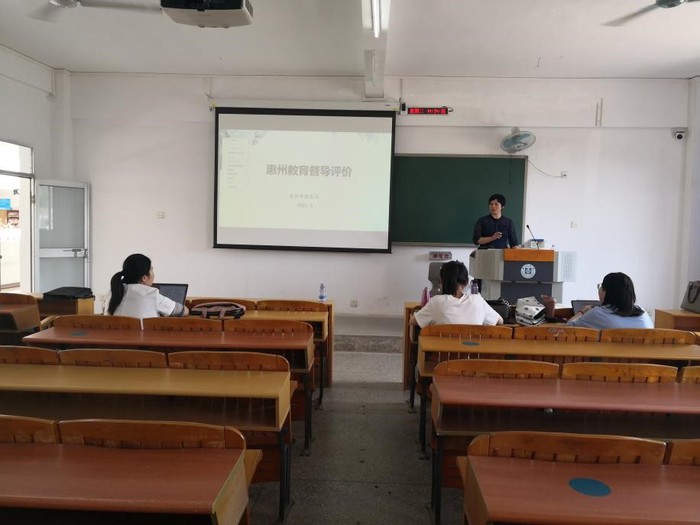 毛少琼主要围绕《教育督导与质量评价》课程在惠州市如何实施教育督导与质量监测进行讲授。她首先介绍了惠州市教育督导发展历程,围绕“督政、督学、评估监测”八个字详细阐述惠州市教育督导评价的实施。随后分享了惠州教育督导评价的案例,如以“教育强镇”为例督促地方政府依法履行教育职责的督政机制、以“责任督学挂牌督导”为例指导各级各类学校规范办学、提高教育质量的督学体制、以“国家义务教育质量监测”为例介绍科学评价教育教学质量。