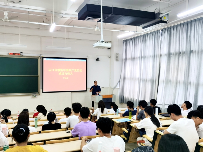 许玩宏选取了中国共产党从建党时期到抗战时期的十个非常重要的口号,并深入解读了这些口号的时代背景、历史作用和深远影响,从小切口看到了中国共产党的宏伟历史。这些口号不仅彰显了中国共产党的理论号召力与群众动员力,也生动形象地展现了中国共产党的成功与伟大。许玩宏表示,希望师生们加强学习,开展好党史学习教育系列活动,深刻领悟“中国共产党为什么能”,从党的伟大历史中汲取前进力量。