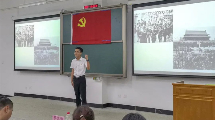 本网讯 5月24日晚,计算机科学与工程学院在旭日大楼101教室开展“奋斗百年路 启航新征程”党史主题演讲比赛。参加活动的有计算机科学与工程学院党总支书记陈璐、党总支副书记陈贤斌、党总支委员吴志攀、学生党支部书记陈珊珊,及学院全体学生党员、入党积极分子代表等150余人。学校党委组织部组织科科长金冶、党委宣传部陈德玺老师、学校辅导员唐冰老师等担任本期演讲比赛决赛活动的评委老师。