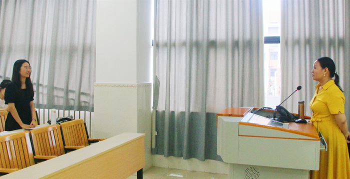 讲座开始前,颜敏教授给学生们播放了《印象惠州·寻找身边的美》《晚礼服的制作之旅》等视频,让在场学生以视觉上直接美的感受。