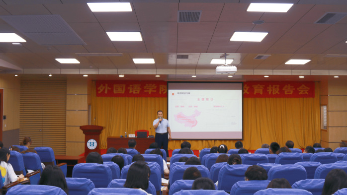 本网讯 5月26日晚,外国语学院在图书馆报告厅举办安全教育报告会,由校人民武装部部长、保卫处处长李金利作主题为“守好安全底线 过好大学生活”专题报告。学院副院长康传金,党总支副书记邹国韶,思政导师张双祥、钟秀妍,辅导员以及各年级学生代表参加了此次报告会。会议由外国语学院党总支书记田华文主持。