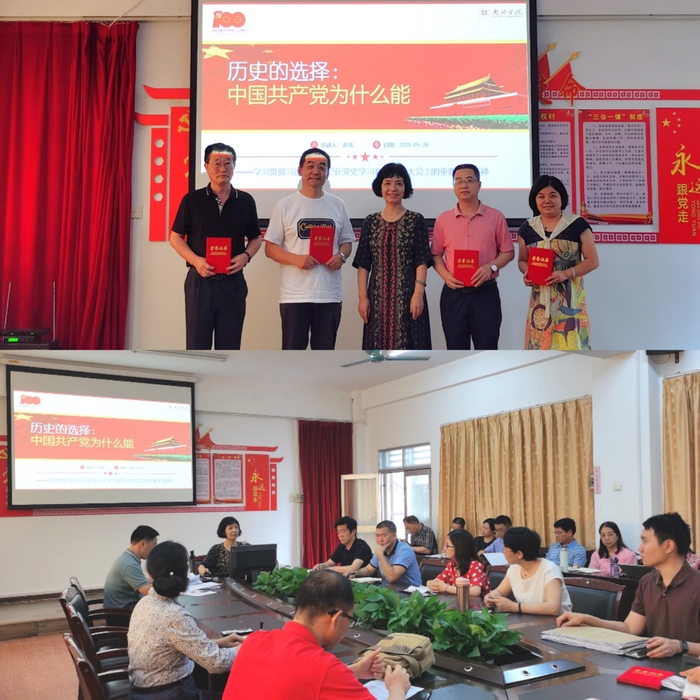 本网讯 5月26日下午,外国语学院党史学习教育专题辅导报告会在学院会议室举行。学校党委委员、宣传部部长金伟应邀作主题为《历史的选择:中国共产党为什么能》的专题辅导报告。会议由外国语学院党总支书记田华文主持,全院教职工聆听了报告会。
