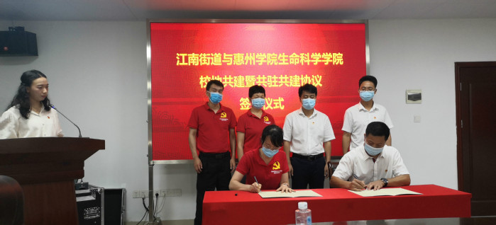 本网讯 近日,生命科学学院党总支与惠城区江南街道党工委举行校地共建合作暨共驻共建协议签约仪式,江南街道党工委书记戴新辉、办事处主任何东文以及江南街道相关领导、各相关部门负责人,学院党政班子成员、党员代表等参加了仪式。签约仪式在江南街道办事处举行。此次签约仪式主要是签订双方校地党建共建和乡村振兴共驻共建协议,进一步推进基层党建工作创新和促进乡村全面振兴。