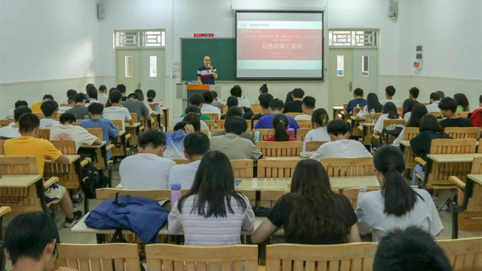 本网讯 5月23日,计算机科学与工程学院在教学实验大楼104课室开展“重温百年党史,传承红色基因”主题活动之红色故事汇初赛。辅导员王萍、马思梦以及肖经聪作为本次比赛的评委,党员代表、青马班学员、2020年国奖、国励、相关受助学生和其他参赛人员共120余人参加了本次活动。