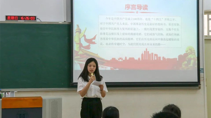 肖经聪老师充分肯定了学生们的精彩演出,强调了重温红色经典的重要意义,并鼓励全体同学正值青春韶华,要奋勇前进,让世界见证中国青年的力量。