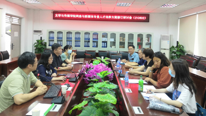 本网讯 6月2日下午,文学与传媒学院在旭日大楼422会议室召开网络与新媒体专业人才培养方案修订研讨会。文学与传媒学院院长陈梦以及网络与新媒体专业全体老师参加了会议,会议由传媒系主任周海英教授主持。