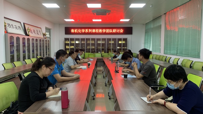本网讯 6月23日下午,化学与材料工程学院在化工楼3E503会议室召开“有机化学系列课程建设与改革”主题研讨会。学院院长刘国聪教授、党总支书记郭爱平、团队负责人彭忠利教授以及十二名团队成员参加了研讨会。本次会议主要围绕学院专业人才培养开设的有机化学系列课程的教学改革、课程思政、团队建设等主要内容进行研讨。