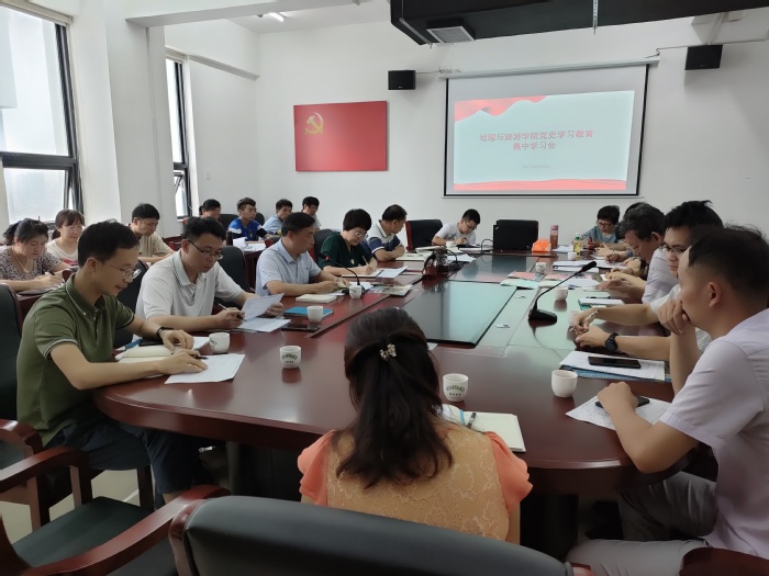 本网讯 6月23日下午,地理与旅游学院在学院会议室召开党史学习教育集中学习会,学院院长戴学军、党总支书记林红从学用结合的角度分别作了主题报告。学院全体教师参加了学习会。