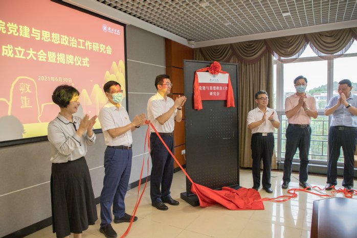 党委书记、校长彭永宏,党委副书记、纪委书记、省监委驻惠州学院监察专员罗川山,副校长郑文,校长助理梁建生,党委组织部部长李江山以及党委宣传部部长金伟共同为“惠州学院党建与思想政治工作研究会”揭牌。