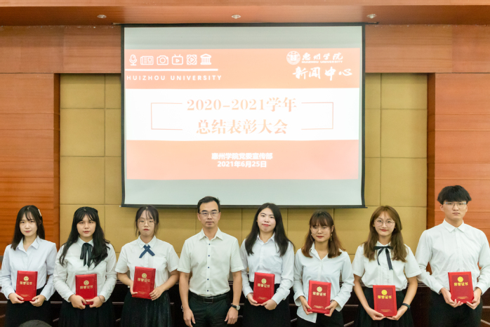 本网讯 6月26日晚,惠州学院新闻中心2020-2021学年总结表彰大会在文城会议厅举行。党委宣传部副部长林少章、党委宣传部部分老师和校新闻中心全体成员参加了会议。